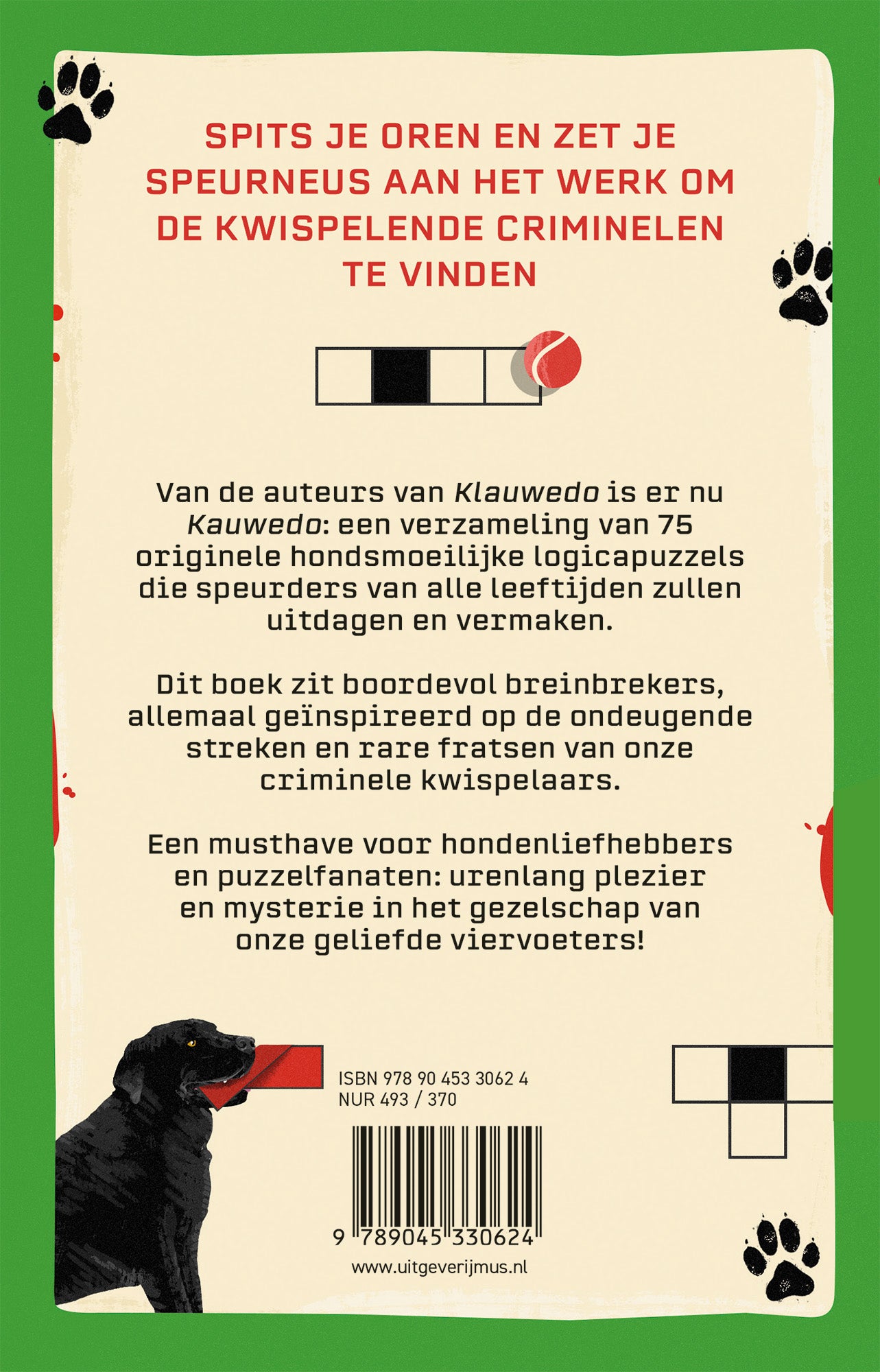 Van de auteurs van Klauwedo is er nu Kauwedo: een verzameling van 75 originele hondsmoeilijke logicapuzzels die speurders van alle leeftijden zullen uitdagen en vermaken. Dit boek zit boordevol breinbrekers, allemaal geïnspireerd op de ondeugende streken en rare fratsen van onze criminele kwispelaars. Een musthave voor hondenliefhebbers en puzzelfanaten: urenlang plezier en mysterie in het gezelschap van onze geliefde viervoeters!